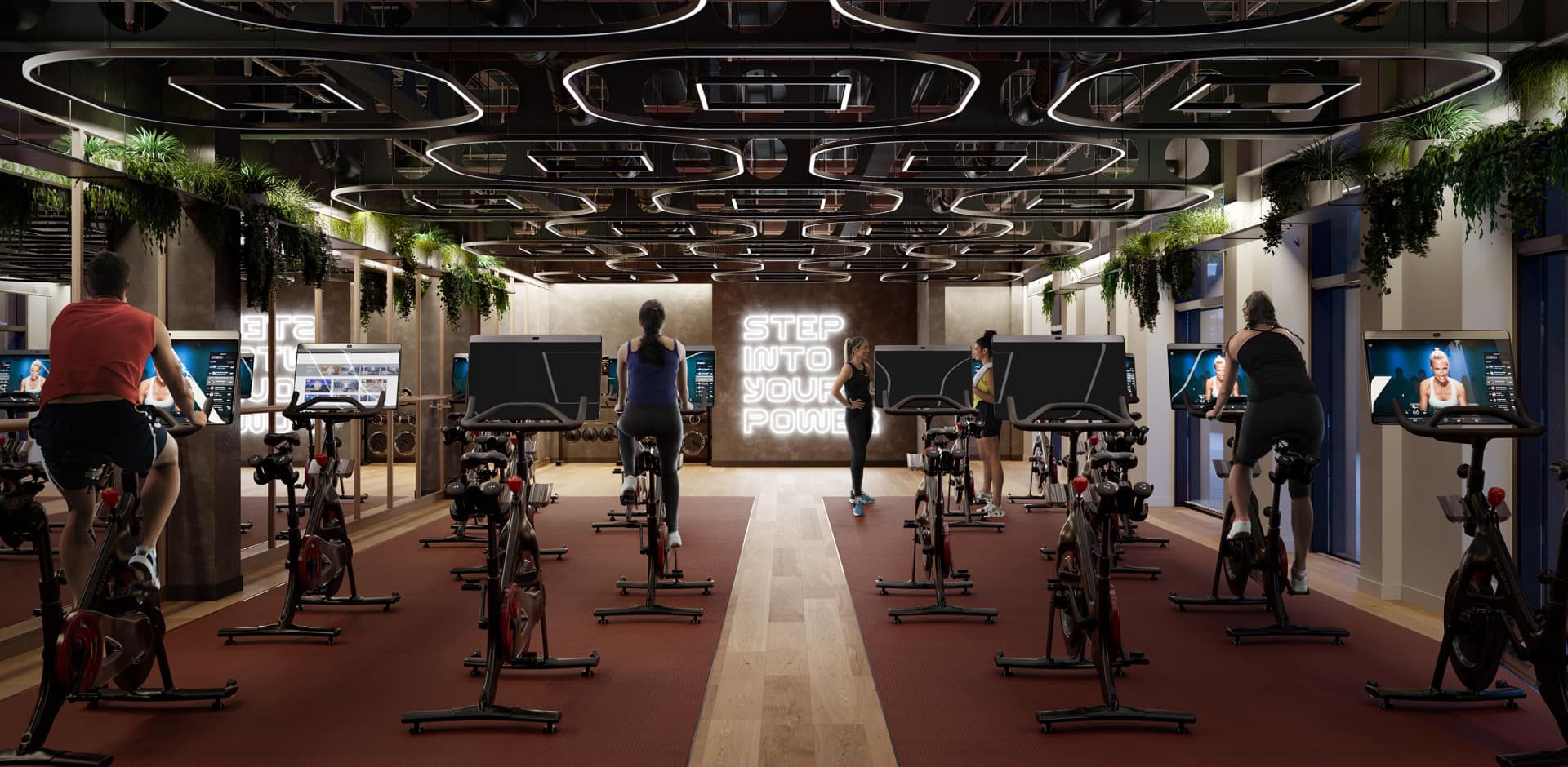 Cycle entrance & storage (268 spaces/lockers), E-Bike charging and cycle repair facilities.