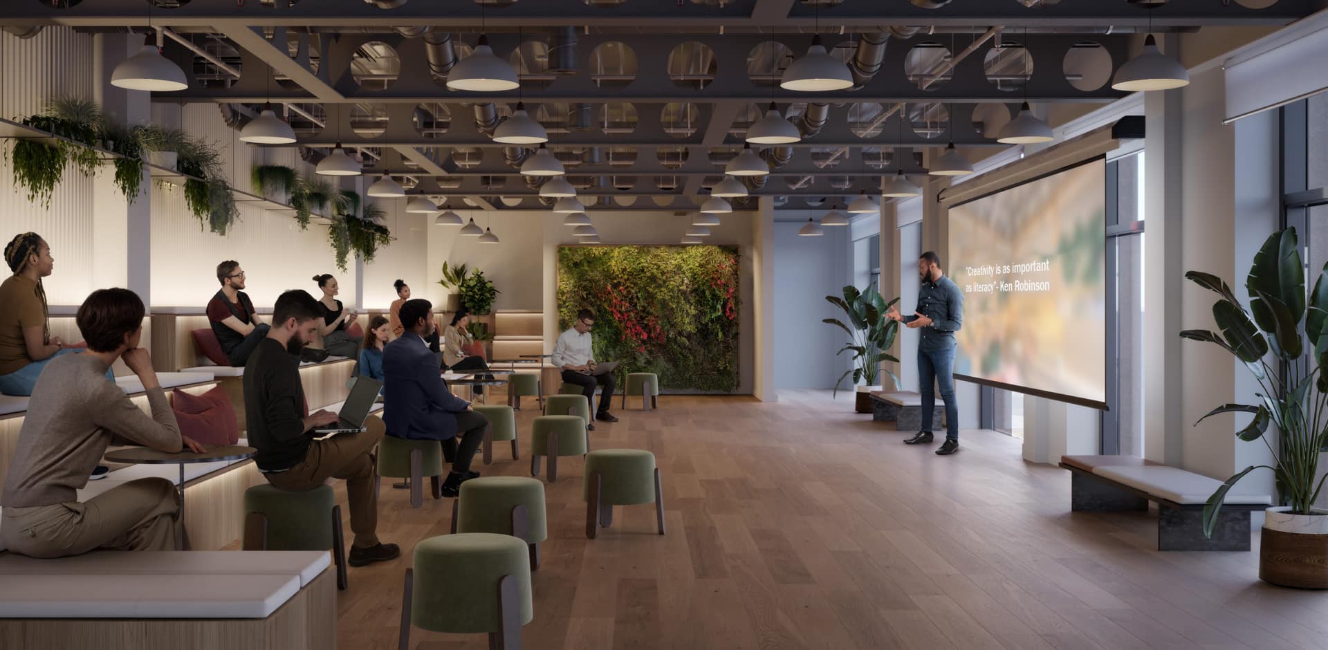 3,900 sq ft of ground floor communal spaces including a double-height reception, café and a generous flexible space.