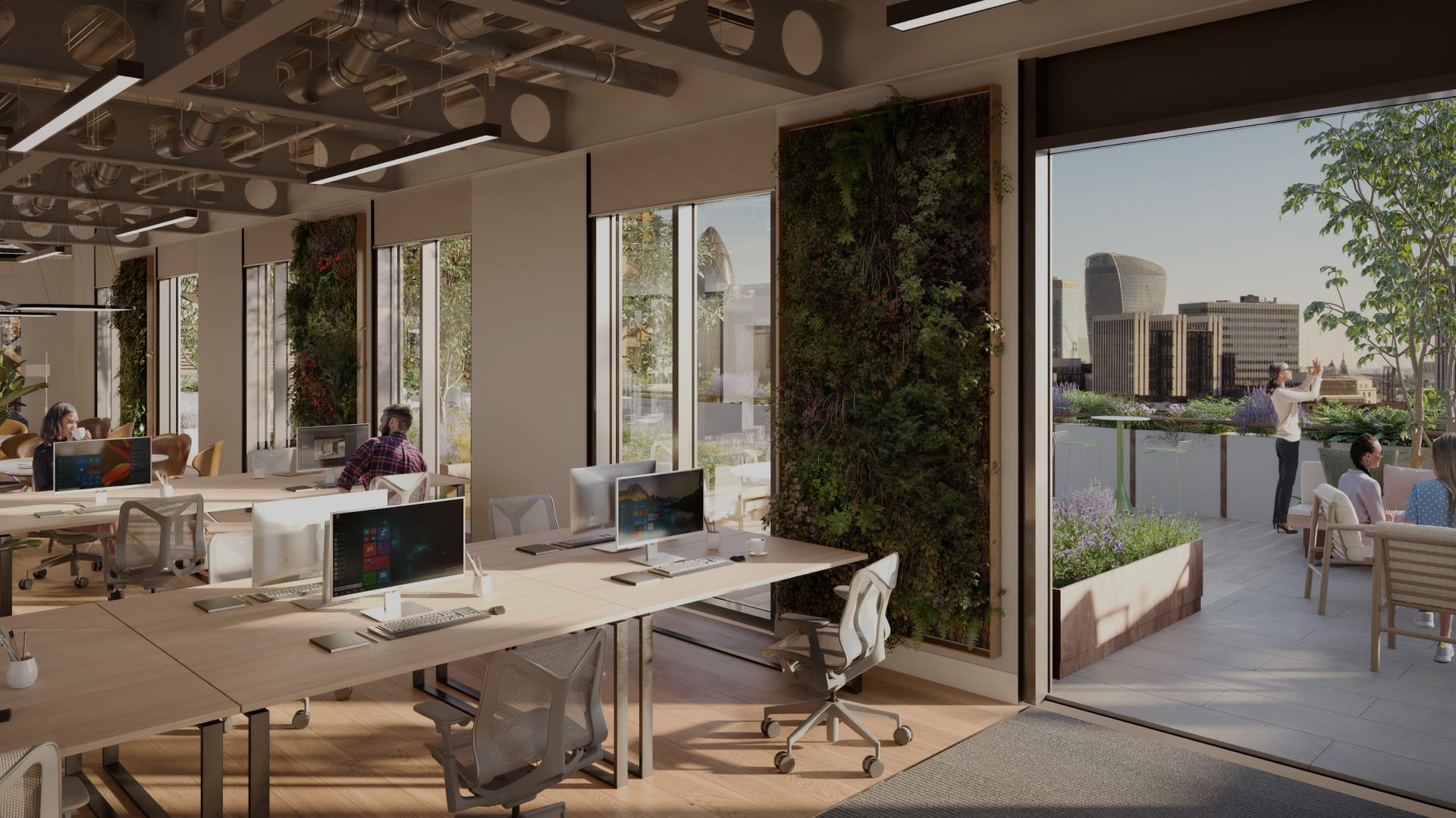 Express your vision across 119,000 sq ft of modern office space, landscaped terraces and first-class amenities. From end-of-journey facilities and double height reception to a large communal terrace with 360 degree views across the capitals skyline.
